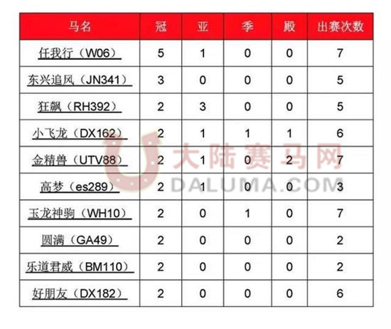 马匹战绩排行榜马匹战绩排行榜