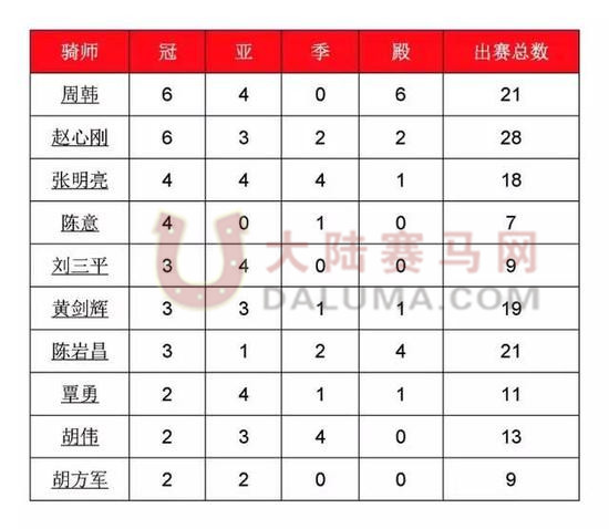骑师战绩排行榜骑师战绩排行榜
