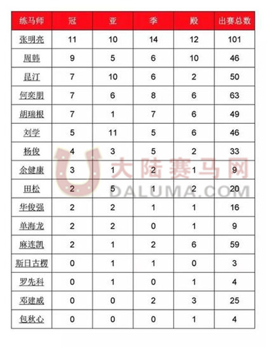 练马师排行榜练马师排行榜
