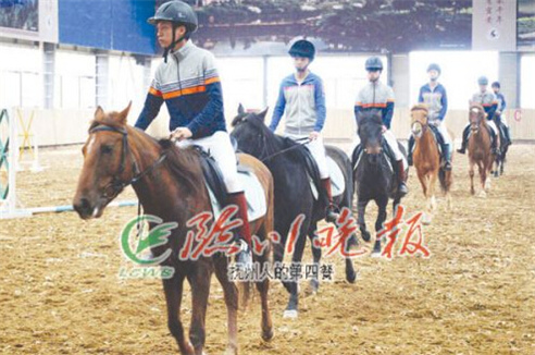 去年,阳光马术基地与宜黄县职教中心联合办学,并获省教育厅批复,成为我省唯一一家马术与管理专业的职业教育基地。目前,该专业首批招收了30多名学生,赵凯妮就是其中的一员。这些学生不仅免学费,且吃住均由基地承担。学生们在这里,需学习文化课、马上训练、马房实践、运动马调教、马术障碍竞技、马场马术竞技等课程,还有马的解剖学、生理学、饲养学、马繁育育种学、疾病防治等学科。