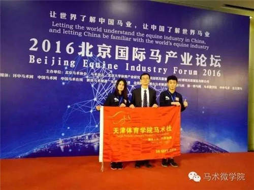 “翻身上马,为爱驰骋”。2016年10月18日至23日,天津体育学院马术社志愿者团队的身影穿梭于北京国际马产业论坛和2016北京马协未来之星马术大赛总决赛的现场,以“低姿态、高起点”踏出了天马社在中国马圈的第一个蹄印。