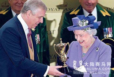 据报道,看见自己的爱驹、4岁的雌马“Estimate”第一个冲过终点线,平日不苟言笑的英国女王伊丽莎白二世喜不自胜,如孩童般拍掌庆祝。据报道,雅士谷赛马金杯赛原本应由女王颁奖,但由于女王自己赢了头马,最后要由安德鲁王子代劳颁奖给她(如下图)。