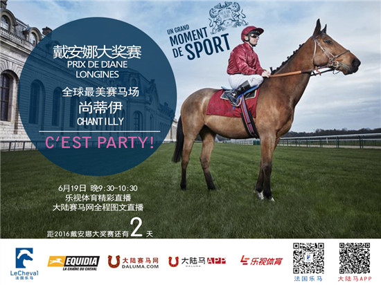 2016年全球规模最大的雌马平地速度赛马——戴安娜大奖赛倒计时3天在法国上演!法国乐马+Equidia电视台+乐视体育视频直播+大陆赛马网PC网站、手机客户端APP、微信、微博全方位呈现!