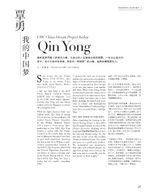 S tar jockey for the China “I explored this field out of curiosity 覃勇,CHC 杰士马主俱乐部骑师,来自