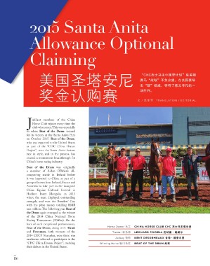 club wins a race. This was especially Jockey 骑师 KENT DESORMEAUX 肯特·德索尔莫