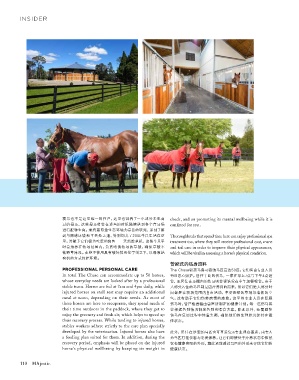 meal at noon, depending on their needs. As most of 此 外,居 住 在 这 里 的马匹也可 享受 S p a 专业 理 容 服 务,由专人