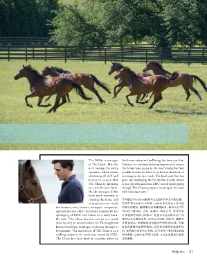 running the farm, and 芈天穆是The Chase驭苑马主庄园的产业及马房经理,