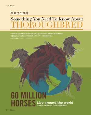 INSIDER 纯血马小百科 THOROUGHBREDSomething You Need To Know About 你知道一匹马的重量吗?你知道纯血马要几岁才能出赛吗?你知道马有几根骨骼吗? 现在就让我们一起通过以下的信息图,好好了解一下这些小常识吧。 整理 / 编辑部 EDITED / EDITORIAL 60 MILLION HORSES Live around the world 全世界共计约有6千万匹马在不同角落生活 112 MAjestic