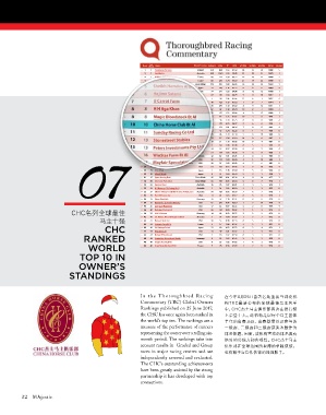 the world’s top ten. The rankings are a 半 年 的出 赛 马匹、出 赛 数 量 以 及参 与的