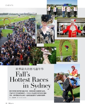 EVENTS 秋季最火的赛马嘉年华 HoFtatells’st Races in Sydney 澳大利亚悉尼秋季赛马嘉年华是一项享誉国际的速度赛马盛事, 于每年的三月至四月间举行。CHC杰士马主俱乐部在放马出赛的 同时,携中国嘉宾及会员们一起感受速度赛马千金难买的激情! 文 / 温 丽 琴 BY KHIM VOON 48 MAjestic