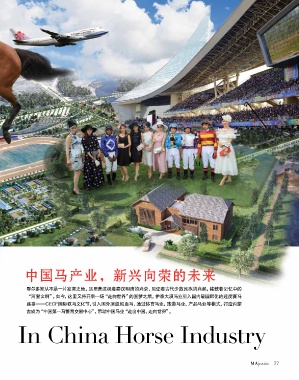 中国马产业,新兴向荣的未来 鄂尔多斯从不是一片寂寞之地,这里曾注视着秦汉明清的兴衰,见证着古代少数民族的兴起,铭载着记忆中的 “河套文明”。如今,这里又将开启一场“走向世界”的圆梦之旅。伊泰大漠马业引入国内最国际化的速度赛马 盛事——CECF国际驭马文化节,引入国外顶级纯血马,通过体育马业,旅游马业、产品马业等模式,打造内蒙 古成为“中国第一马繁育交易中心”,带动中国马业“走出中国,走向世界”。 In China Horse Industry MAjestic 77