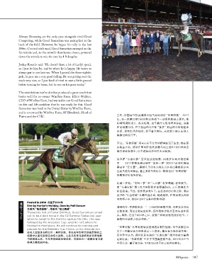 Samaritan was bred in the United States by WinStar Farm, 而“乐善好施”除了在开闸阶段 还能 跟 着队伍,之 后 都 掉在 大