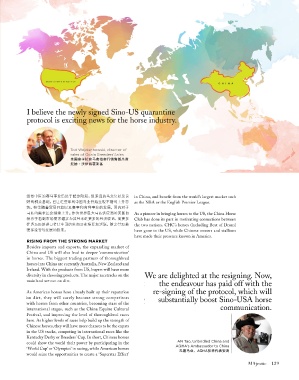 势。相信随着贸易开放以及赛事和育种事业的发展,国内对于 As a pioneer in bringing horses to the US, the China Horse