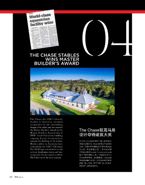 NSW. Loca l Austra lian building 尔士州“杰出建 造 者 奖”。该马房 由澳