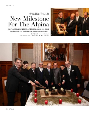 EVENTS 爱宾娜百年庆典 New Milestone For The Alpina 创建于1897年的瑞士爱宾娜滑雪水疗度假酒店是CHC杰士马主俱乐部 1 的生活锋尚设施之一,在刚过去的年末,酒店迎来了120周年大庆。 文 / 温 丽 琴 BY KHIM VOON P H O T O G R A P H Y BY Z U N G @ T H E PHOTOZ 52 MAjestic