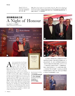 Ch inese New Year Dinner CHC主席张祖德出席领取奖项 上做出杰出贡献 的人物与 机 构表 示敬 意。英国 作为C H C杰