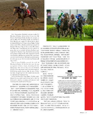 ready before Breeders’ Cup. Yoshida has strong hips 跑 出了第 五名的 英 勇战 绩。回 到 美 国 后,“选 择 沙 地 还 是 草
