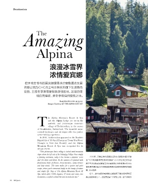 T he Alpina Mountain Resort & Spa 2 0 18 年,享 誉 全 球 的 美 国 生 活 杂 志《读 者 文 摘》评 选