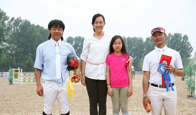 天星调良马术俱乐部董事总经理王蔷女士为地杆级别获奖骑手香香、刘谟宁颁奖(从左至右)