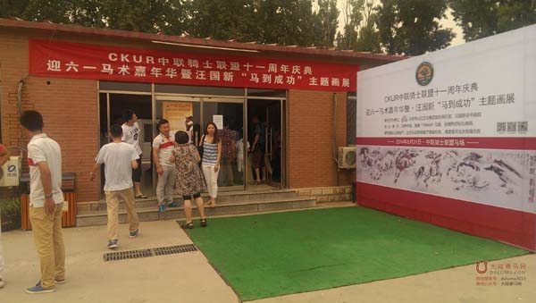 5月31日下午,北京中联骑士联盟马术俱乐部在狼垡马场举办了“CKUR中联骑士联盟十一周年庆典迎六一马术嘉年华暨汪国新"马到成功"主题画展”。