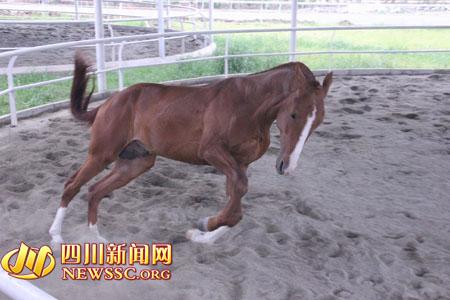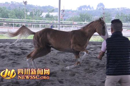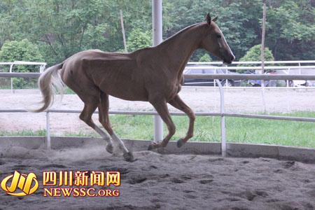 4月23日下午,在位于成都市青白江区清泉镇的天骁马术的跑马场内,一匹枣红色的骏马奔驰在跑马场上,显示出一股巨大的力量:它四蹄翻腾、长鬃飞扬,壮美的姿势宛若历尽艰辛穿洋过海的信鸽;仰天长啸,那动人肺腑的马嘶响彻长空。它的名字叫布莱克·山,是一匹来自土库曼斯坦的纯血汗血马,大约三个月前,它和它的同伴古乐、库什德.尼塔莎一起来到成都定居。据天骁马术俱乐部相关负责人介绍,它们是目前西南地区仅有的、持国际护照的、血统纯正的汗血马。