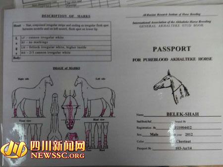 该负责人介绍,从去年6月开始,布莱克·山、古乐、库什德·尼塔莎就开始为来成都生活而奔波、忙碌,“由于土库曼斯坦与我们没有直接的贸易往来,布莱克·山、古乐、库什德·尼塔莎的移民之路,经历了不少的周折。”该负责人介绍,去年6月,它们在经过1-3个月的检疫检验后,从土库曼斯坦乘飞机抵达俄罗斯,然后在俄罗斯又经过1-3个月的检验检疫后,才飞抵北京,最后才来到成都定居,“前后花了差不多七个月的时间。而且它们拥有的是俄罗斯护照,是目前西南地区仅有的、持国际护照的、血统纯正的汗血马。”
