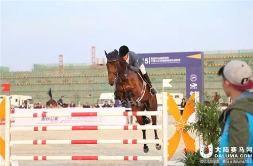 下午15点整,120cm-130cm级别的决赛继续进行。来自广东金伯乐的陈景川、上海松声的陈重权与江苏海澜国际的音克巴依尔均以0罚分进入附加赛,并且在附加赛中全部跑出0罚分。凭借 3.17 秒的时间优势,广东名将陈景川携爱马 SmackDE KENS一举夺魁。同时广东金伯乐在总积分榜上再度以一分优势反超上海松声。