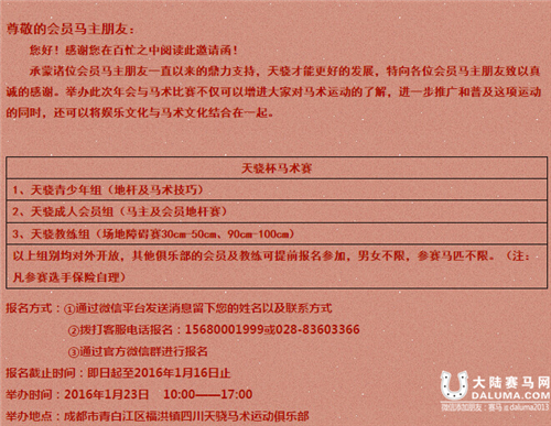 2016年天骁年会及第一届“天骁杯”马术障碍赛邀请函