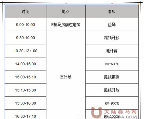 竞赛项目:地杆赛、场地障碍30-50CM、60-90CM、90-100CM