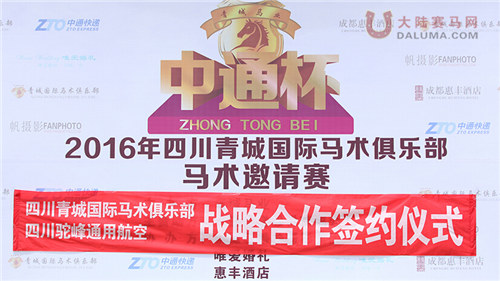 2016年5月15日,四川青城国际马术俱乐部(中通杯)马术邀请赛,在成都街子古镇青城国际马术俱乐部盛装上演,中通快递荣任赛事合作伙伴、并为赛事官方冠名。惠丰酒店、帆摄影、唯爱婚礼、驼峰通航、北京八尺龙马具协办。本次比赛在成都掀起一袭优雅骑士风潮,这场川内最高水准的专业马术赛事,引来川内外60名顶尖骑手同场角逐,亦汇集马术爱好者齐聚一堂。呈献川内超高水准的马术盛事。为川内的观众带来了一场顶级的赛事享受。
