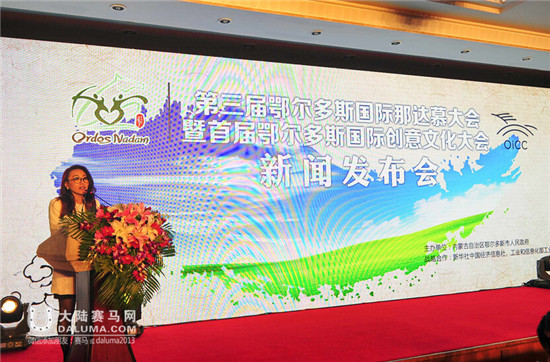 2016内蒙古鄂尔多斯国际驭马文化节的组委会代表,CHC杰士马主俱乐部业务发展副总裁张嘉莉女士在新闻发布会上登台并发言称: