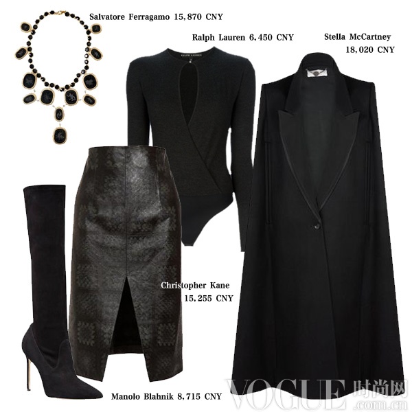 长斗篷其实是过去贵族骑马出行时最常用的装备,所以对于骑士风的装扮来说也是要素。配以本季大热的中间开衩半裙及带裆上装,更利于行动。