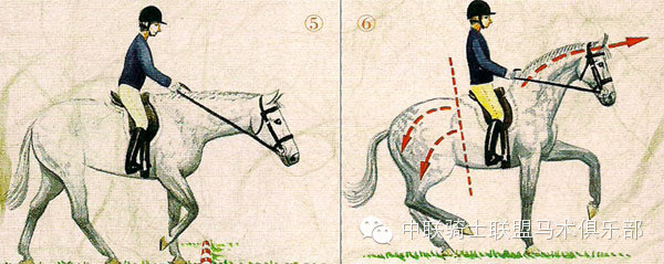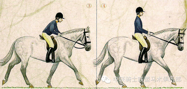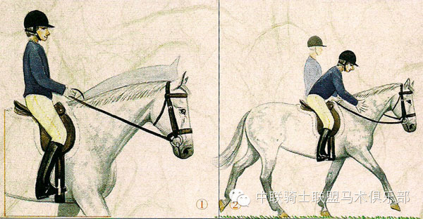 ①最初自由缰慢步,观察马匹想把头放在什么位置,注意马匹的头部是如何前后运动的。