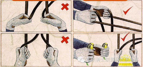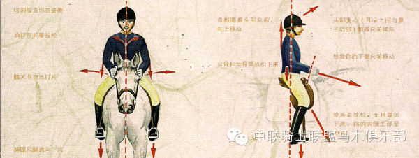要不停地检查自己的姿势感觉你的脖子是否自由,你的肩膀是否放松,你的胳膊肘是否放松并且下垂,你的肘部不要靠在肋骨上锁定住,要让它稍微向外一点。想象你的双手手腕内侧有光束照耀着彼此,这会帮你保持手部握缰姿势的端正:手掌是放松的,指尖接触手掌心。