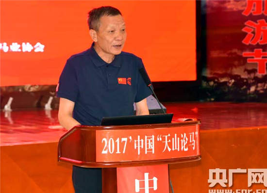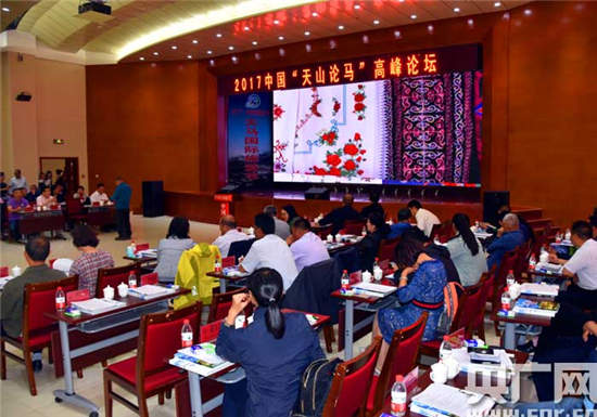 2017年7月17日,由中国马业协会与新疆伊犁昭苏县马产业发展委员会联合主办;西域马业有限责任公司承办;国家马产业技术创新战略联盟、新疆马业协会、伊犁马业协会等协办的主题为“交流交往交融 牵手马与世界”的“2017中国天山论马高峰论坛”在新疆伊犁昭苏县学苑宾馆举行。来自全国的与马业相关的工作者及专家、嘉宾应邀出席。