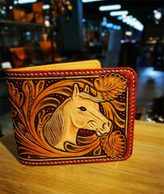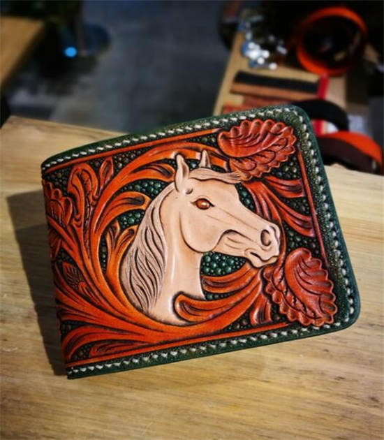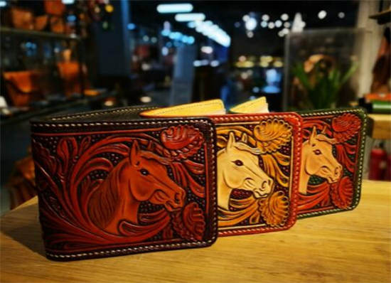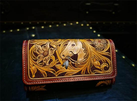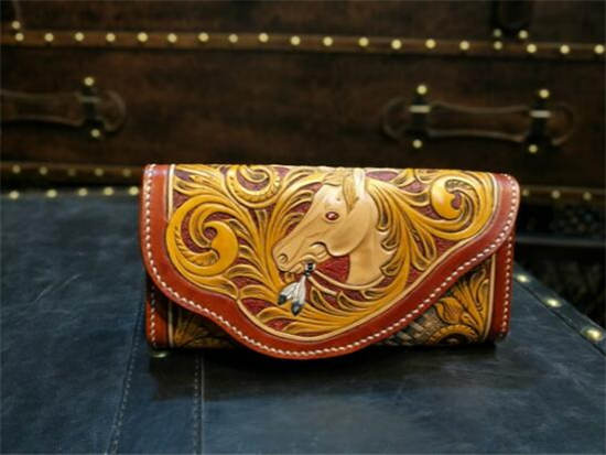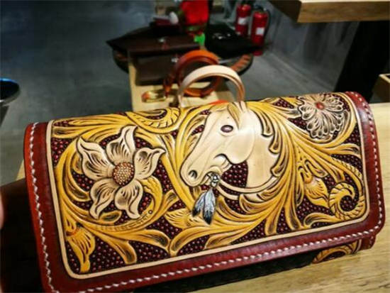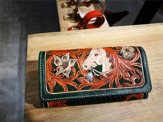 3、不可或缺的生活用品---满雕花马鞍包,腰包及长短夹的马头主题作品呈现。