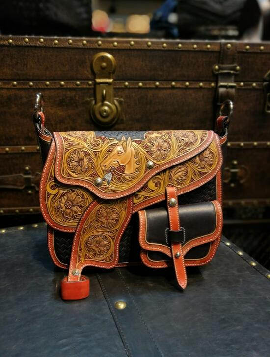 1、 雕花马鞍--来自俄怀明的灵感,纯手作满雕花西部鞍搭配南非A级鸵鸟皮坐垫。