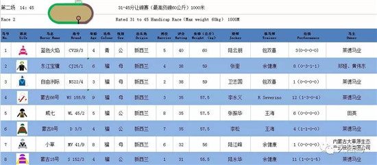 第二场:14:45 31-45分让磅赛(最高负磅60公斤)1000米
