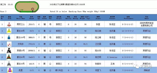 第三场:15:15 30分或以下让磅赛(最高负磅58公斤)1500米