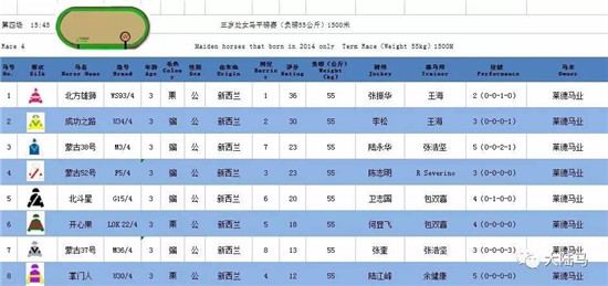 第四场:15:45 三岁处女马平磅赛(负磅55公斤)1500米