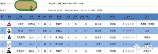 第五场:16:15 46-65分让磅赛(最高负磅58公斤)1500米
