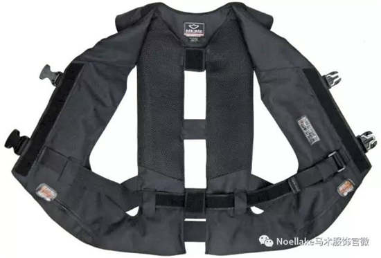 马是害怕反光的动物,因此hit-air在“H-MODEL”这款马术充气护甲中避开了所有会反光的材质,包括连接绳处,使用的也都是与YKK合作的最新款高强度塑料搭扣。