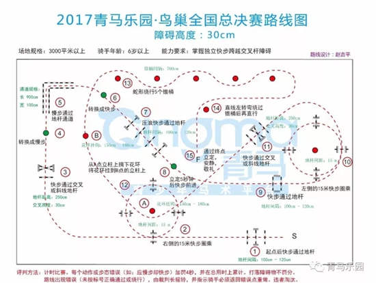 2017青马乐园·鸟巢全国总决赛的路线图由青马乐园赛事路线总设计师、国际马术联合会场地障碍裁判、中国马术协会场地障碍及三项赛技术代表赵吉平先生专门设计。赵吉平先生还将担任本次比赛的总裁判长,国际级、专业团队为青马乐园赛事保驾护航。