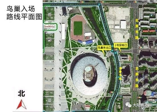 路线:从北辰东路行至慧忠路交叉十字路口向西,进入鸟巢东北口一号安检口,过桥进入鸟巢东北门,在东北门入场。