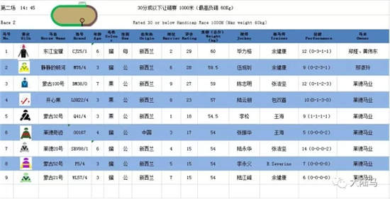 第二场:14:45 30分或以下让磅赛 1000米