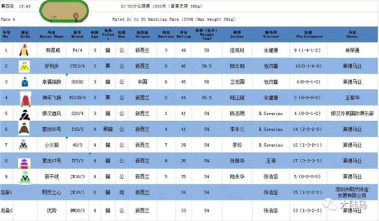 第四场:15:45 31-50分让磅赛 1500米