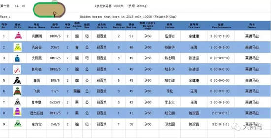 第一场:14:15 2岁处女马赛 1000米