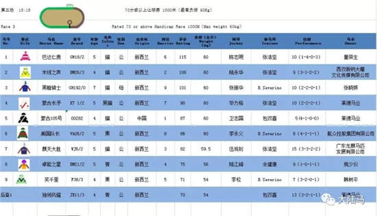 第三场:15:15 70分或以上让磅赛 1000米