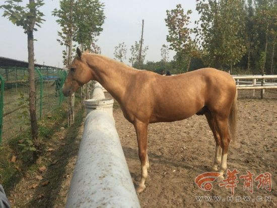 黄伟所在马场训练的这两匹汗血马吃的是从甘肃买过来的苜蓿草,仅草料一项,一个月的开销就有3000元左右。 除了汗血马之外,令黄伟骄傲的还有一匹荷兰温血大白马,原来,这匹从国外引进的大温血马在整个陕西马术圈来说都算是最好的赛马之一,据黄伟介绍,这匹马在国外参加过不少比赛,也拿到过名次,来到中国后,只参过一次比赛,就是今年7月举办的首届白鹿原马术障碍赛。