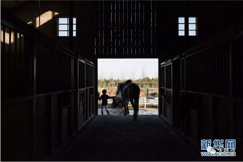燕尾服、白马裤、长筒靴……冲进马房,9岁的王雨坤和12岁的王乾坤兄弟俩麻利地换上训练服,迫不及待地与“老朋友”——赛马“董小姐”和“风暴”交流起来。